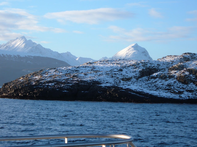 Ao fundo, as montanhas do Chile. O Canal Beagle é a fronteira natural entre a Argentina e o Chile.